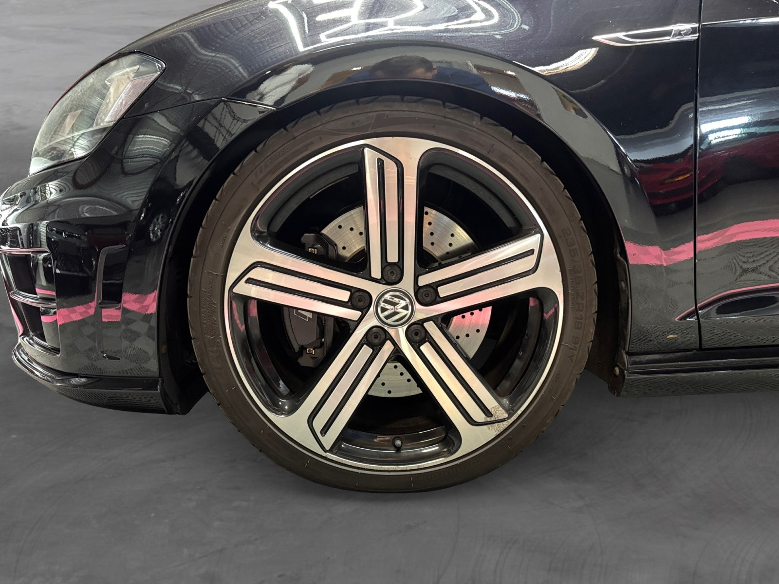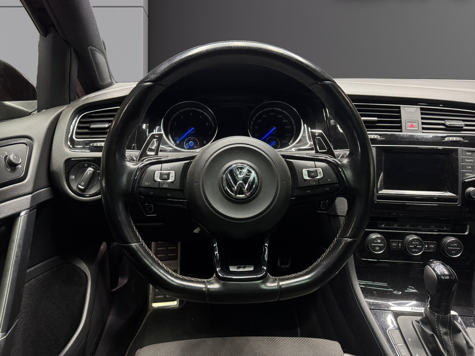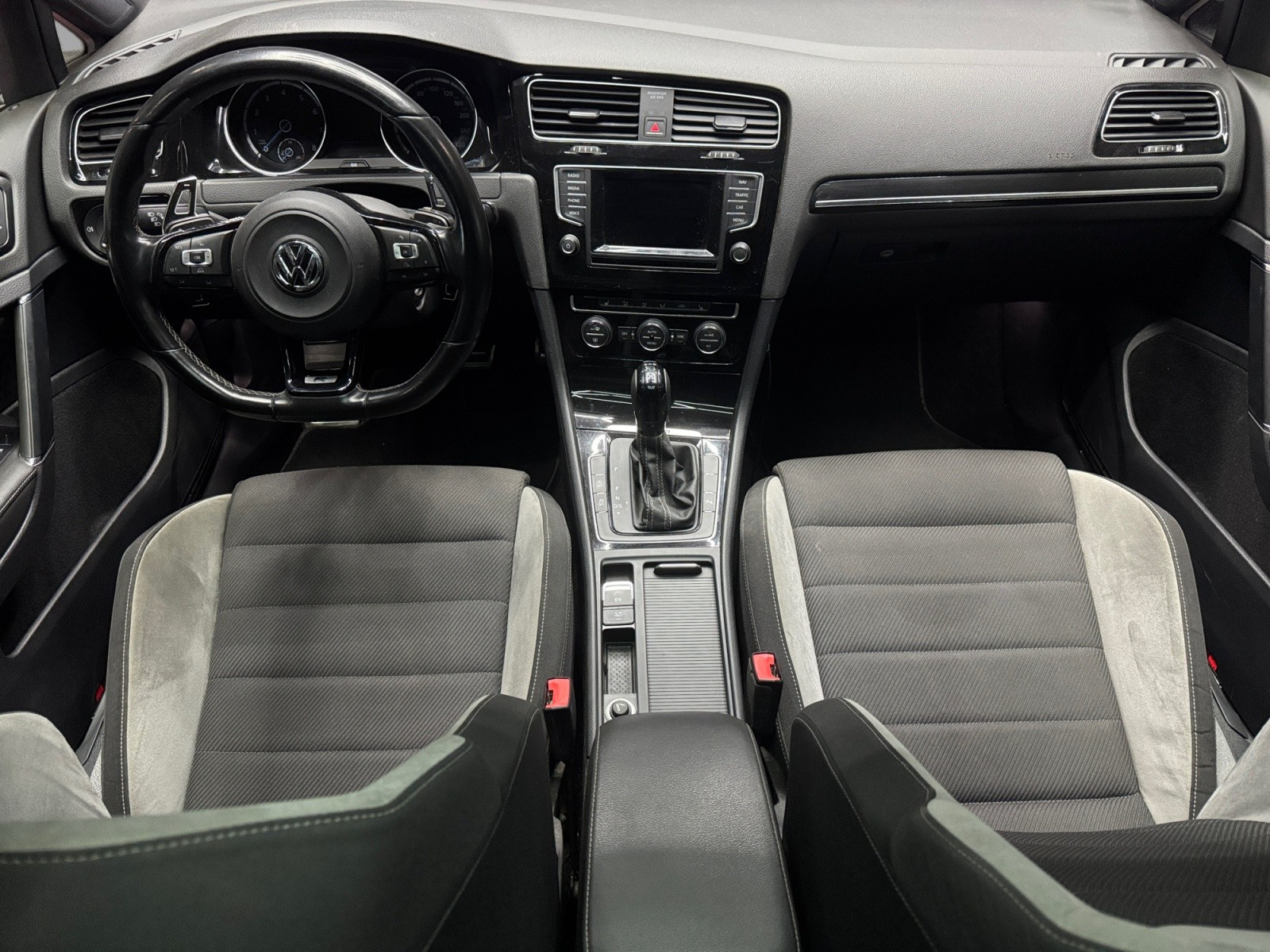 Volant Sport cuir multifonction 3 branches avec insert noir laqué siglé "R" (ajoute automatiquement les palettes au volant sur la boîte DSG)