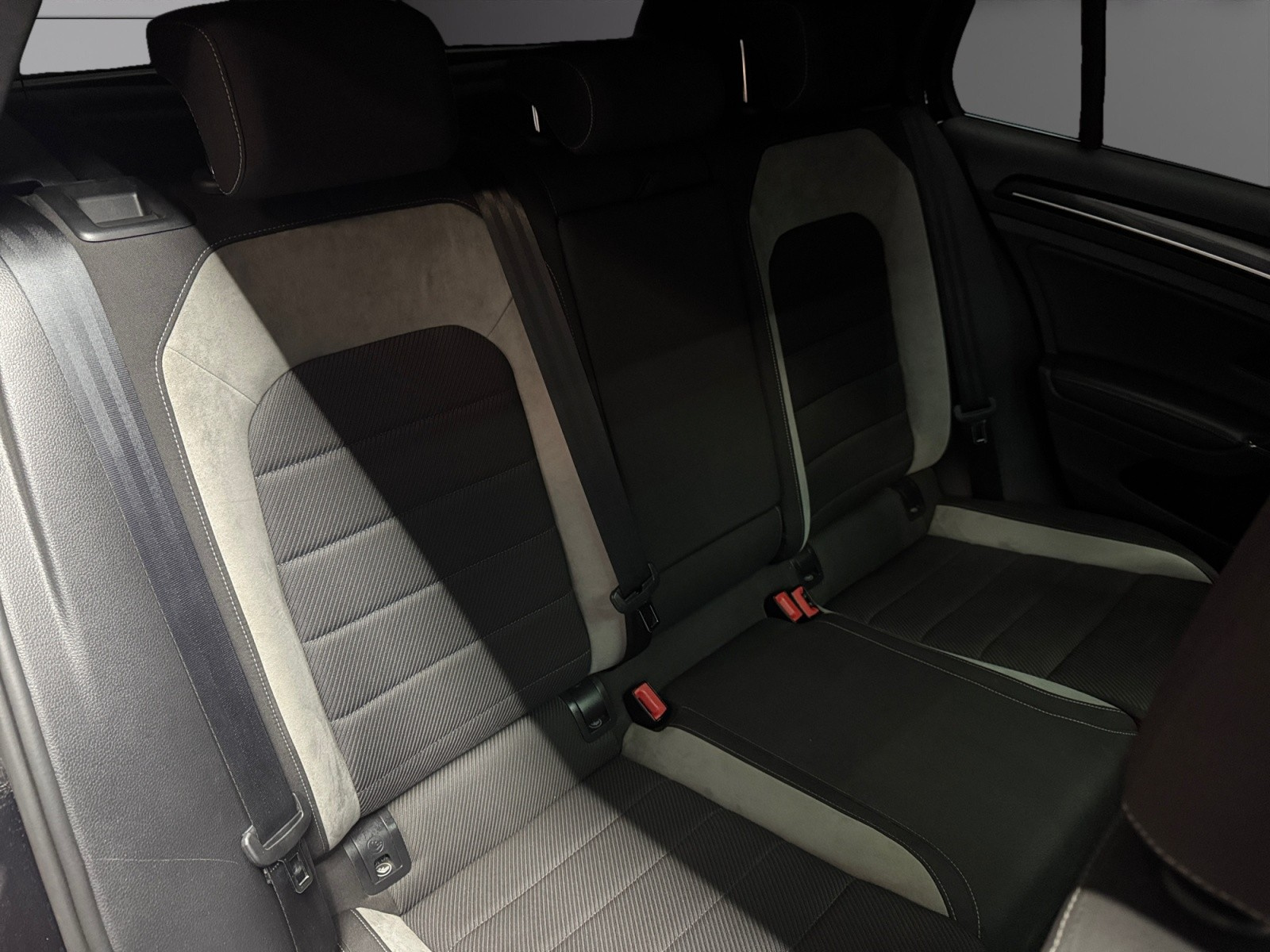 Sièges AV Top Sport avec sellerie spécifique en tissu Race, bourrelets latéraux de maintien en alcantara, surpiqures grises et logo "R" sur le dossier