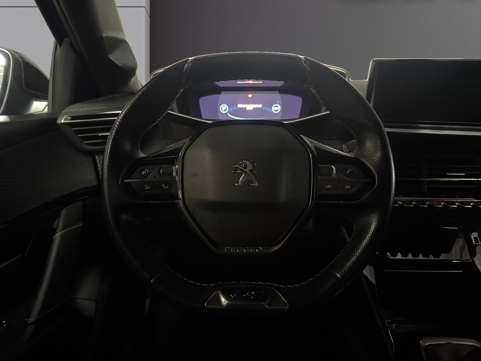 Volant compact cuir fleur avec laçage vert, Lion chromé et badge GT et commandes multimédia sur volant